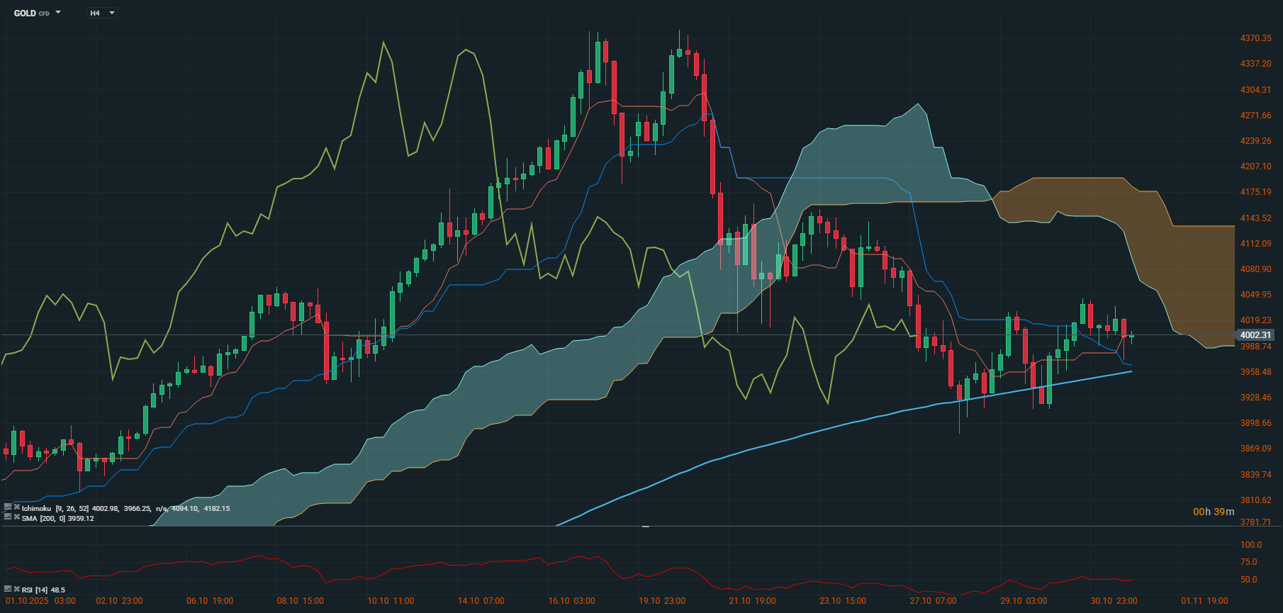 Na semana final do mês, verificou-se algum recuo no preço do ouro. O preço caiu para cerca de 3.890 dólares por onça, antes de recuperar ligeiramente no último dia do mês, fechando ligeiramente acima dos 4.000 dólares por onça (4.002,50). Esta variação reflectiu um ajustamento natural do mercado depois dos picos alcançados anteriormente, ainda que o valor de fecho continue alto face ao início do mês, evidenciando a resiliência do ouro como activo em períodos voláteis.