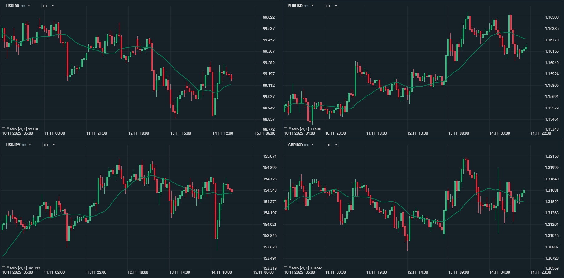 O mercado cambial viveu uma semana marcada por movimentos moderados, mas significativos, enquanto os investidores avaliavam o impacto do fim do shutdown governamental nos Estados Unidos e a ausência prolongada de dados macroeconómicos fiáveis. Sem referências estatísticas actualizadas, grande parte da negociação fez-se baseada em expectativas, comentários de responsáveis dos bancos centrais e na procura por activos de refúgio.