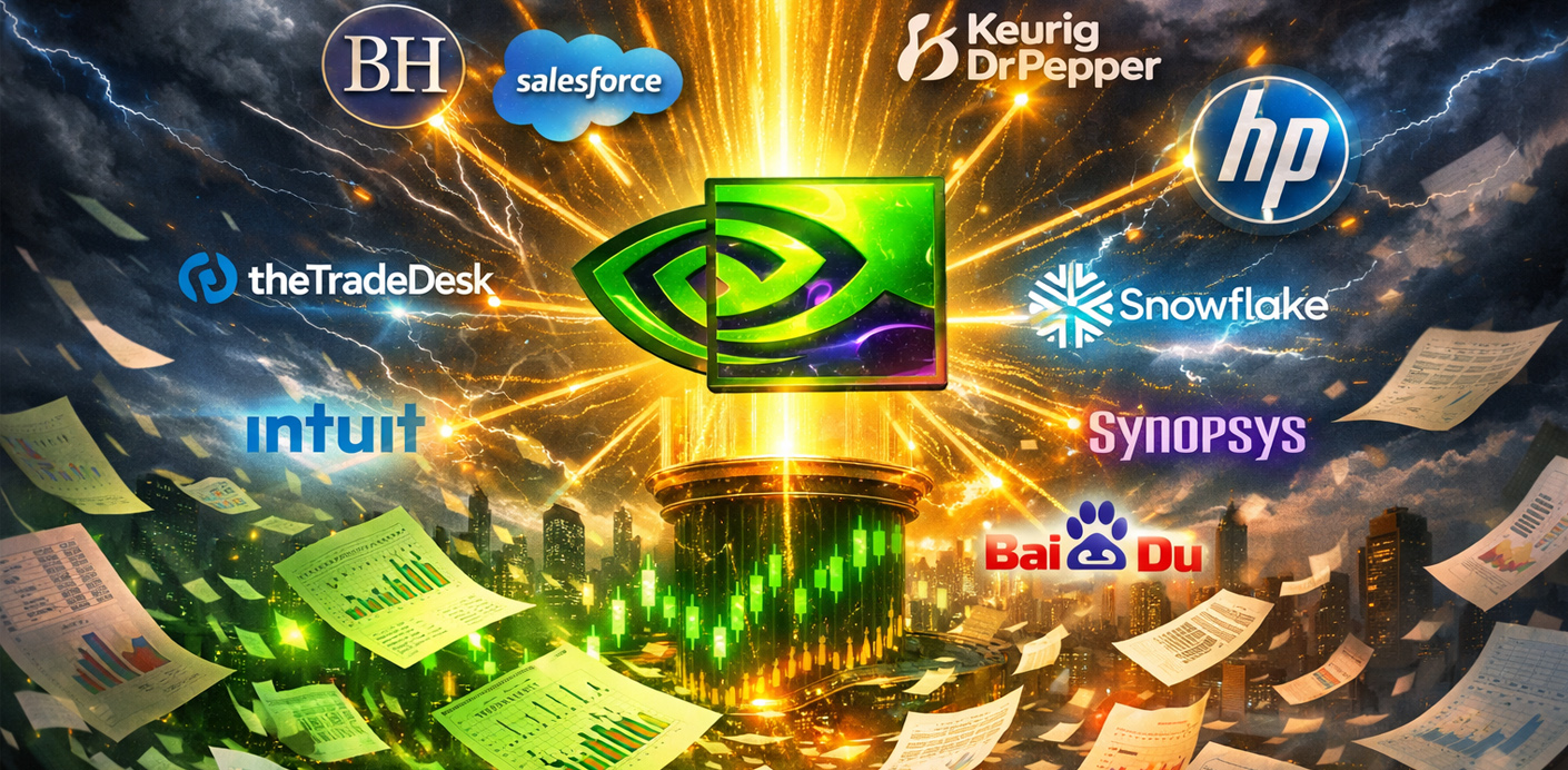 Além da NVIDIA, a semana traz outros relatórios relevantes: a Berkshire Hathaway (de Warren Buffett) revela os resultados, oferecendo uma visão ampla sobre o conglomerado e o sentimento económico; a Salesforce testa o pulso ao software empresarial e ao consumo corporativo; a Snowflake e a Synopsys trazem leituras sobre cloud e semicondutores; a The Trade Desk reflecte a saúde da publicidade digital; a Intuit mostra o comportamento dos consumidores em finanças pessoais; a Keurig Dr Pepper e a HP dão pistas sobre o retalho e o hardware de consumo; e a Baidu representa o ecossistema tecnológico chinês.