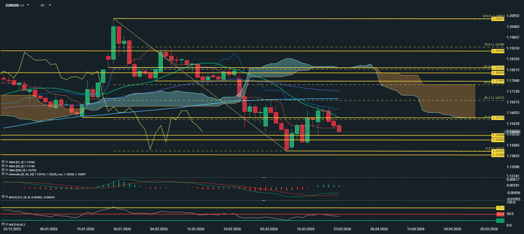 Mas, na minha opinião, olhando para o que se tem verificado desde o início deste mês que termina esta semana, o mercado continuará a estar principalmente atento ao que se passa no Médio Oriente. Os preços da energia deverão continuar no centro das preocupações e a ditar o sentimento de mercado. Qualquer escalada no conflito irá continuar a impulsionar o preço do petróleo (e/ou a mantê-lo em níveis historicamente elevados), suportando o dólar e pressionando o EUR/USD. Por outro lado, sinais de alívio no conflito poderão permitir alguma recuperação ao par, embora com resistência relevante na zona de 1,1600, à semelhança do observado na semana anterior.