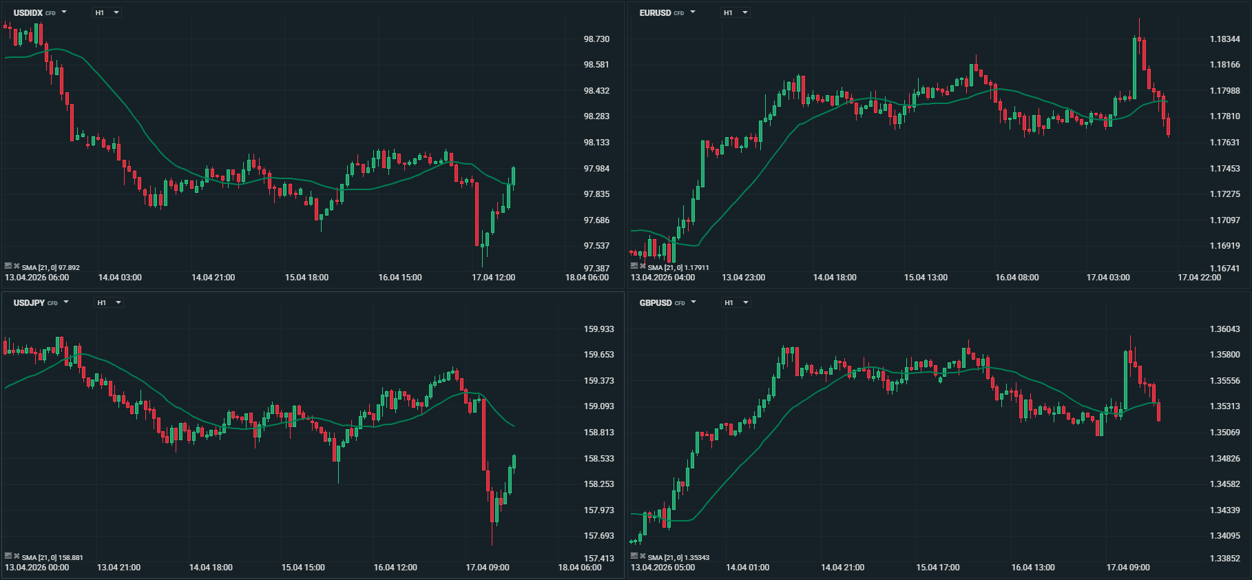 No início da semana, o dólar americano beneficiava de um ambiente de aversão ao risco, impulsionado pelas tensões no Estreito de Ormuz e pelos preços elevados do petróleo. O índice DXY começou a semana em torno dos 99 pontos, sustentado pela percepção de “porto seguro” e pelos yields mais elevados nos Estados Unidos. O euro e a libra esterlina sofreram pressão, enquanto o iene japonês oscilou entre ganhos modestos como moeda de refúgio e perdas relacionadas com o défice energético do Japão.