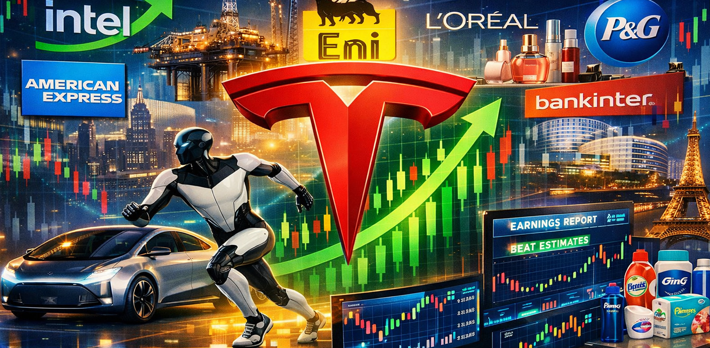 A época de resultados continua a bom ritmo. O evento mais aguardado é, sem dúvida, a Tesla, que divulga os seus resultados do primeiro trimestre na quarta-feira, dia 22, depois do fecho de mercado. A empresa entregou 358.023 veículos no primeiro trimestre, ligeiramente abaixo das estimativas do mercado, mas acima do ano anterior, numa altura em que os investidores estão cada vez mais focados no avanço do robotáxi Cybercab e do robot humanoide Optimus do que nos números das vendas de automóveis tradicionais. Também esta semana apresenta resultados a Intel, a confirmar os sinais de recuperação após um 2025 difícil, e a American Express, barómetro do consumo de luxo num contexto de incerteza económica. Na Europa, os holofotes apontam para a L'Oréal, que dará uma leitura valiosa sobre o consumo global de bens de marca, para o ENI, com o petróleo em alta por razões óbvias, e para o Bankinter, que divulga resultados trimestrais numa semana em que o sector financeiro europeu está mais vigilante do que nunca. A Procter & Gamble, com a sua carteira defensiva de bens de consumo essenciais, fecha o conjunto com um teste ao poder de preço das grandes marcas face à inflação persistente.