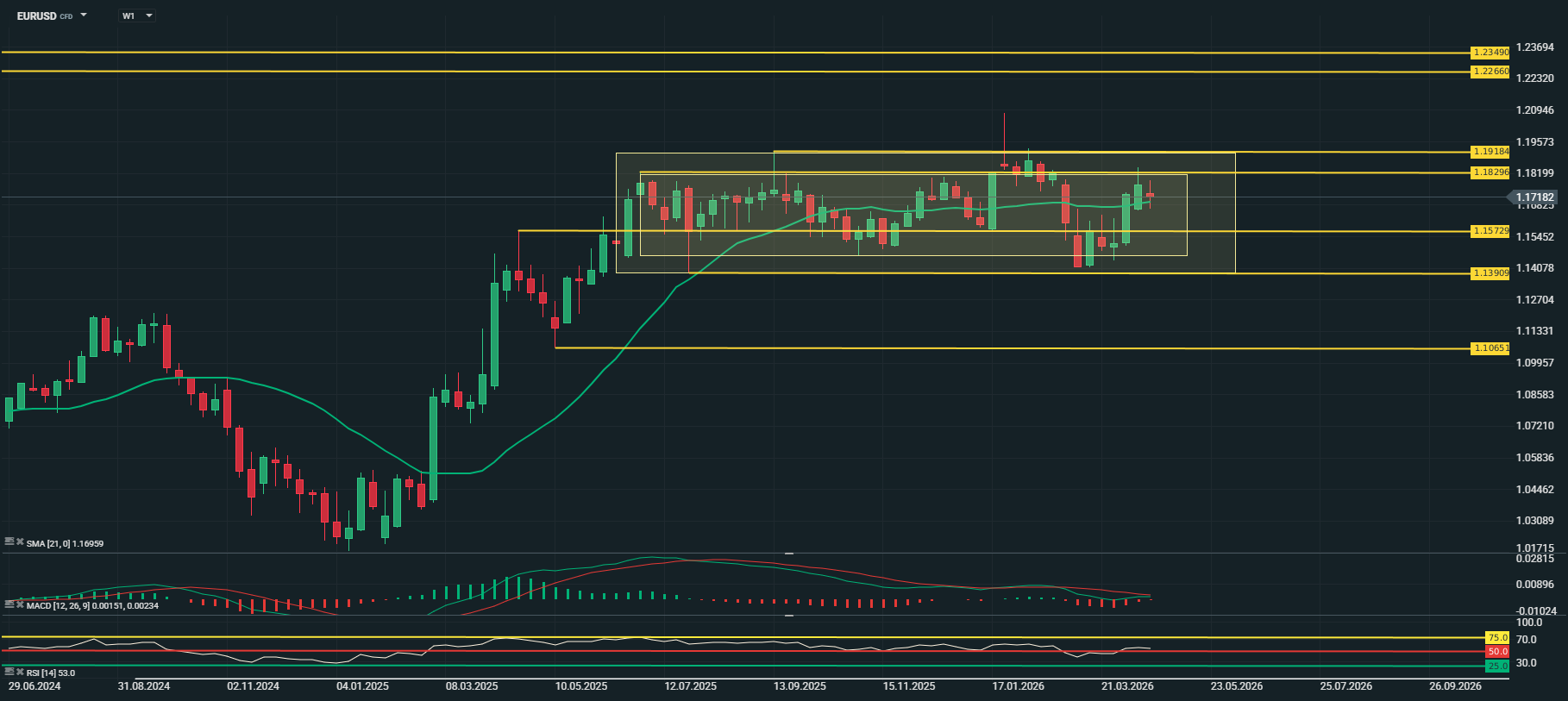 Na minha opinião, a agenda de eventos e dados económicos irá certamente aumentar a volatilidade no EUR/USD durante esta semana, num cenário em que o impasse no Médio Oriente se mantenha. O grande impulsionador do mercado irá continuar a ser o Estreito de Ormuz, ou melhor, o fluxo noticioso que origina, com o petróleo como barómetro da avaliação de risco feito pelo mercado. Mais tensão, petróleo a subir e pressão sobre o EUR/USD. O mercado precisa de ver algo de mais concreto para sair do intervalo 1,1700/1,1800, e não creio que serão para já estes números económicos nem os bancos centrais a fazê-lo, salvo qualquer grande surpresa, como uma subida imediata de taxas.
